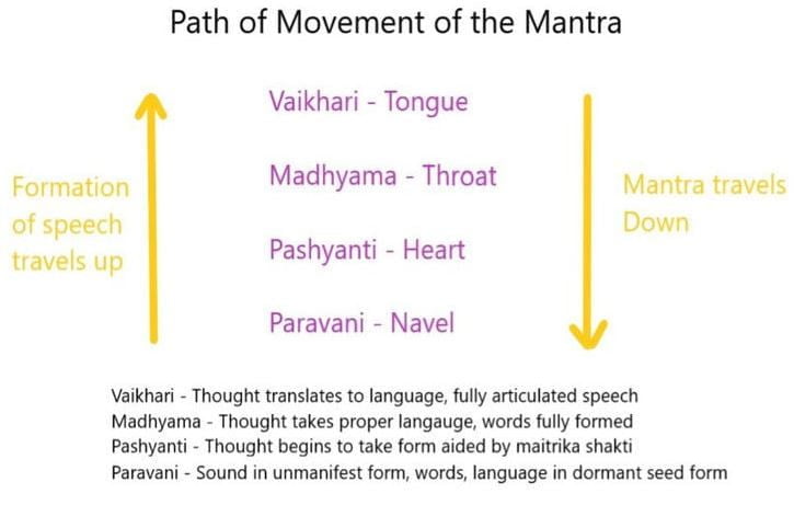 Generally, There are 4 levels of Speech – Para, Pashyanti, Madhyama, and Vaikari. Human beings speak only the fourth level. The language we speak is vaikari. It is the Language of Communication for Normal Human Beings.